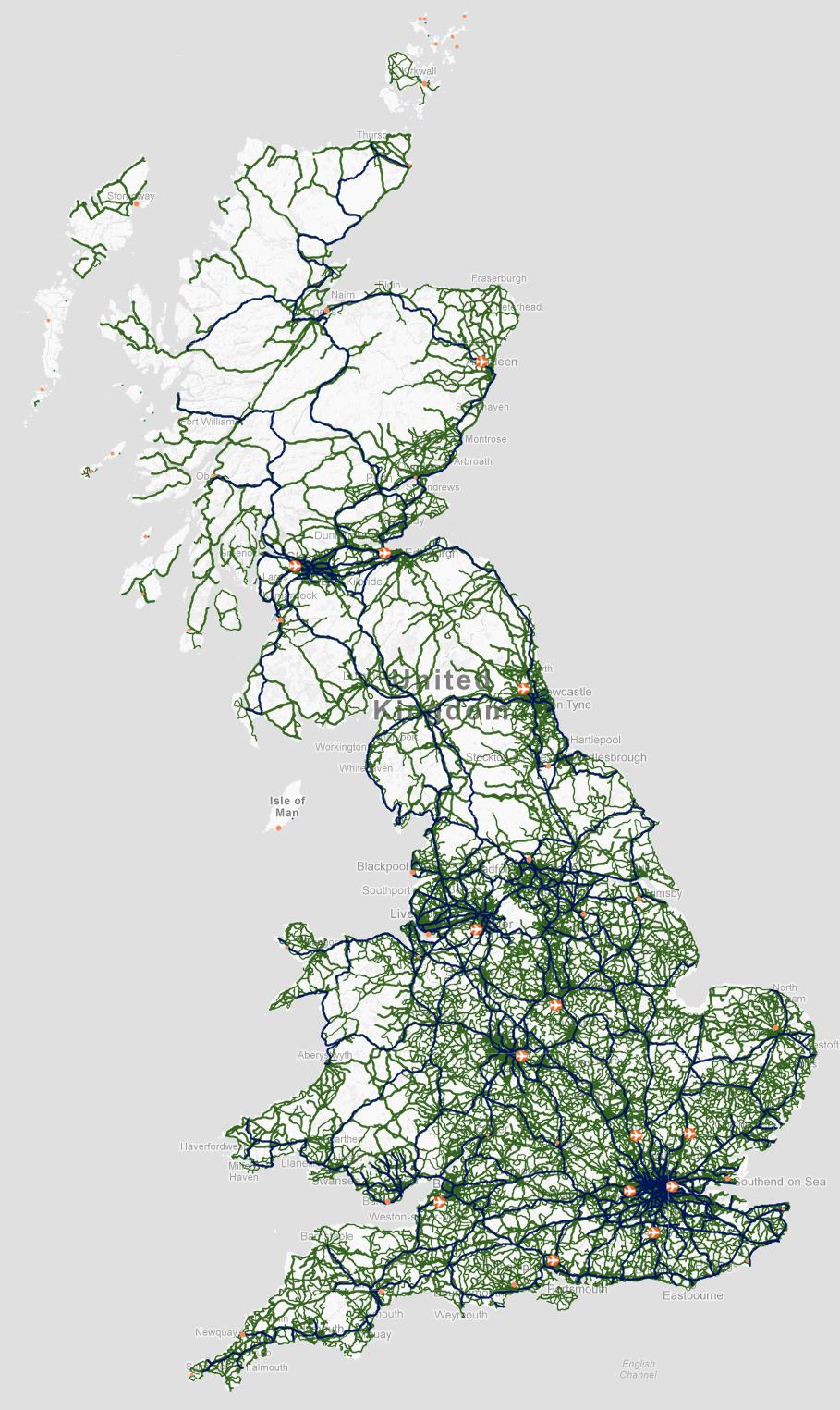 Reino unido mapa de transporte. Reino unido de transporte de mapa (Norte de Europa - Europa) para imprimir. Reino unido de transporte de mapa (Norte de Europa - Europa) para descargar.